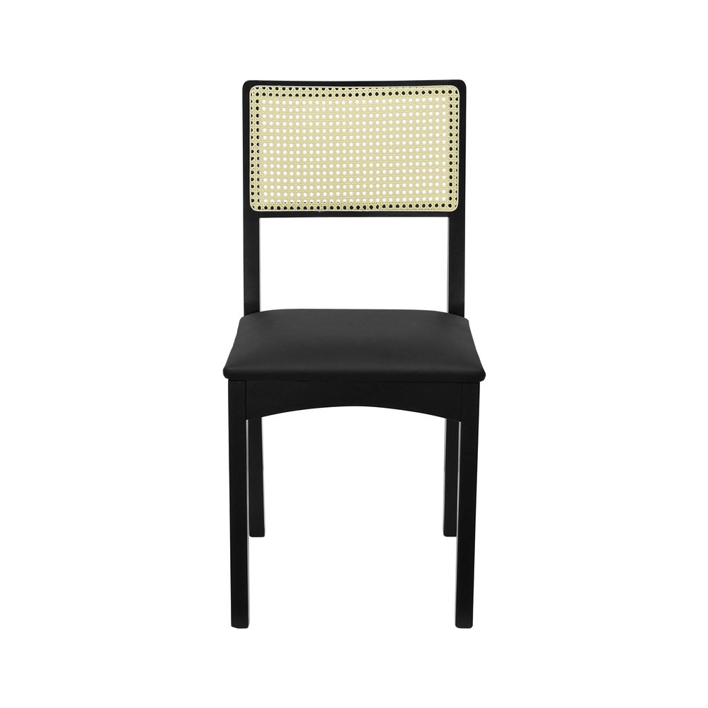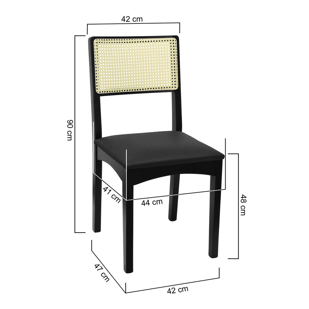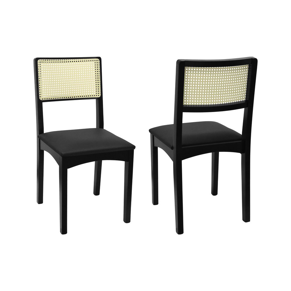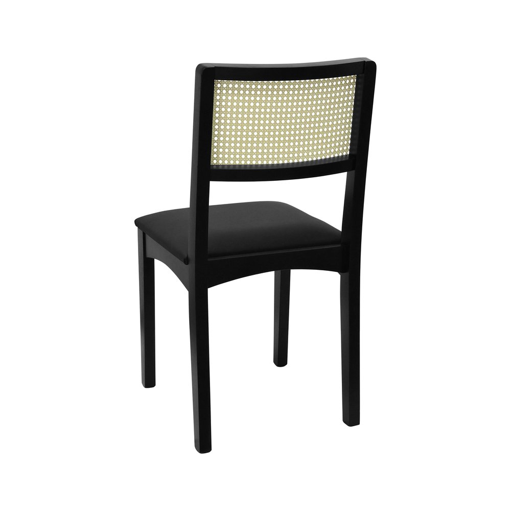 Kit 2 Cadeiras Pérola Madeira Maciça com Encosto em Telinha e Assento Estofado - Preto