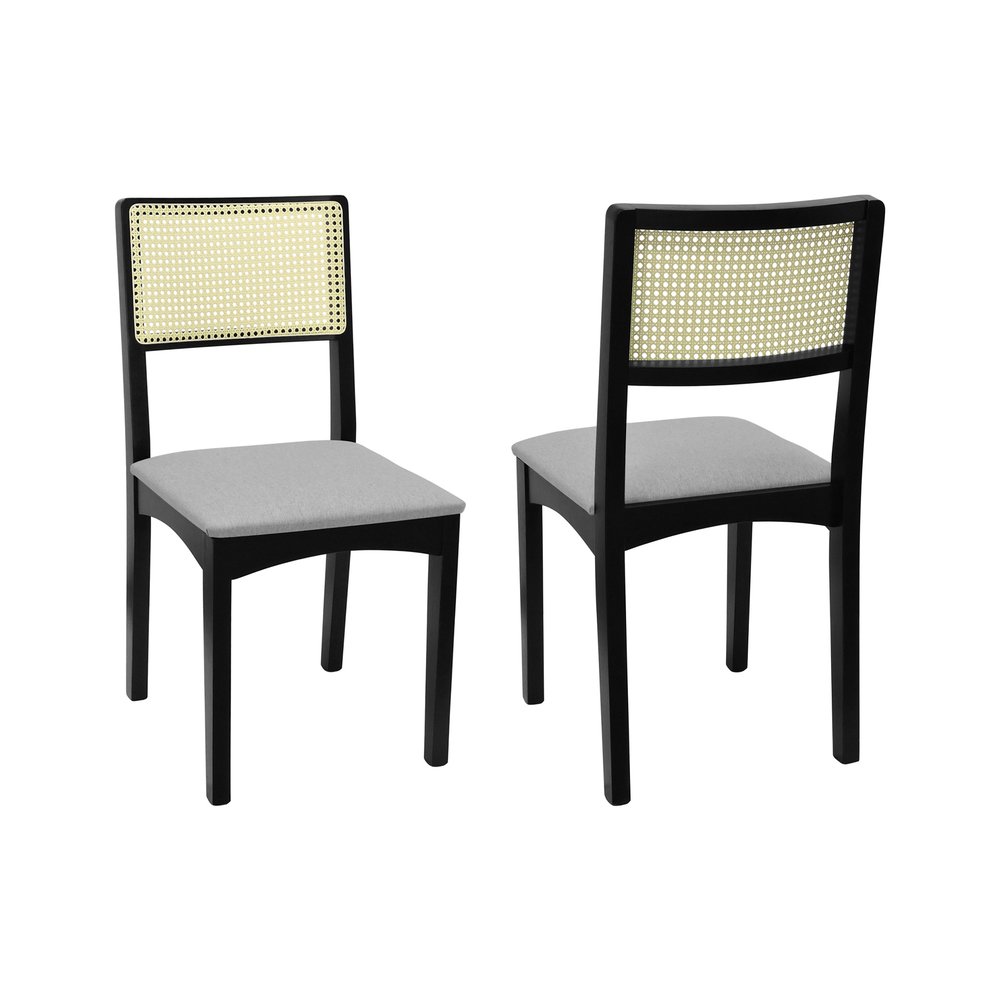 Kit 2 Cadeiras Pérola Madeira Maciça com Encosto em Telinha e Assento Estofado - Preto