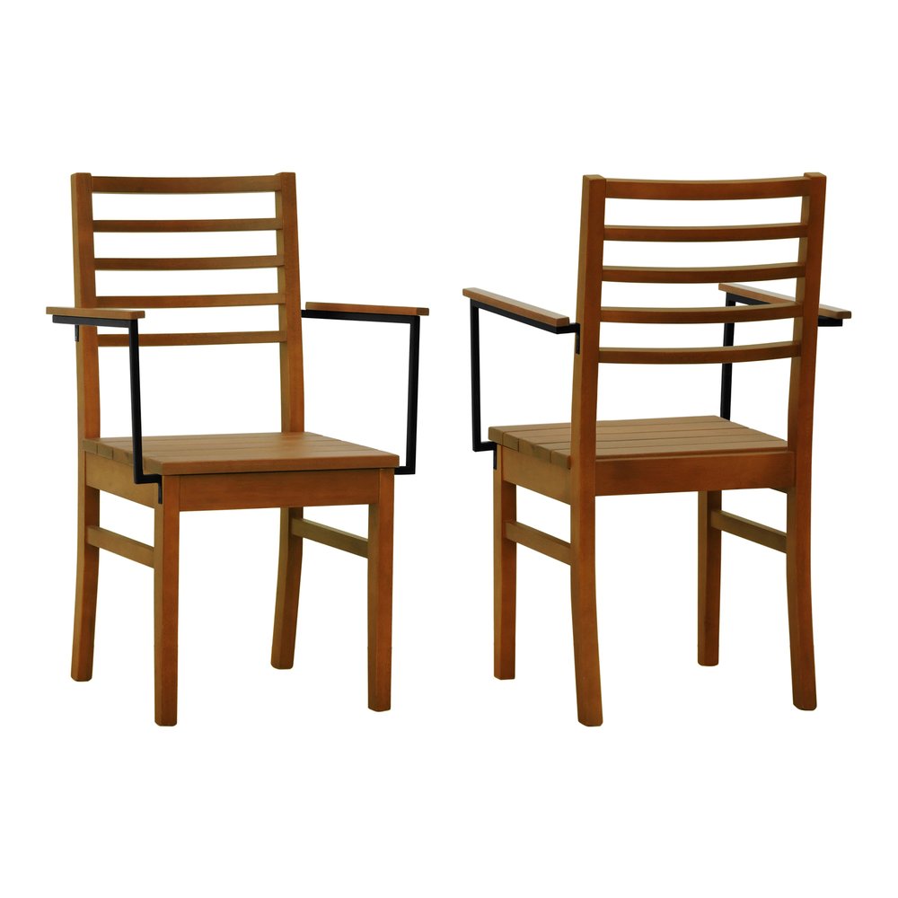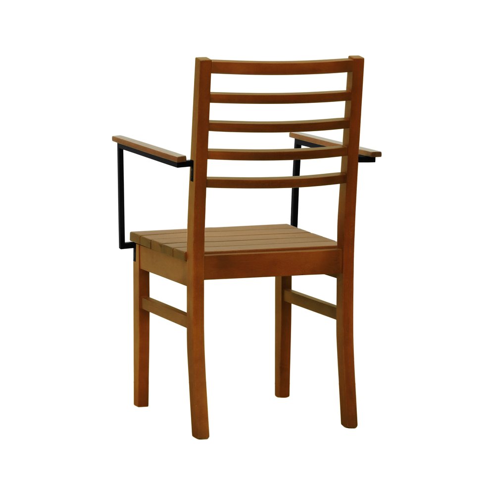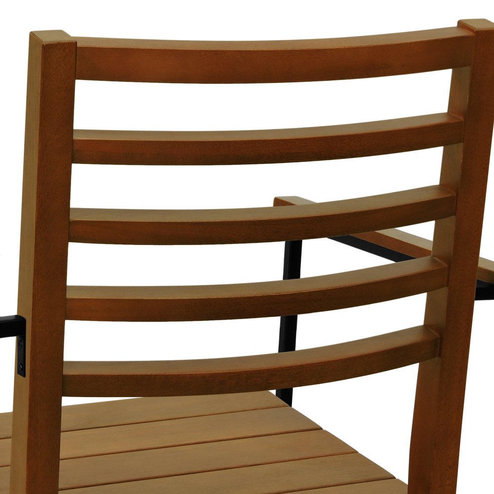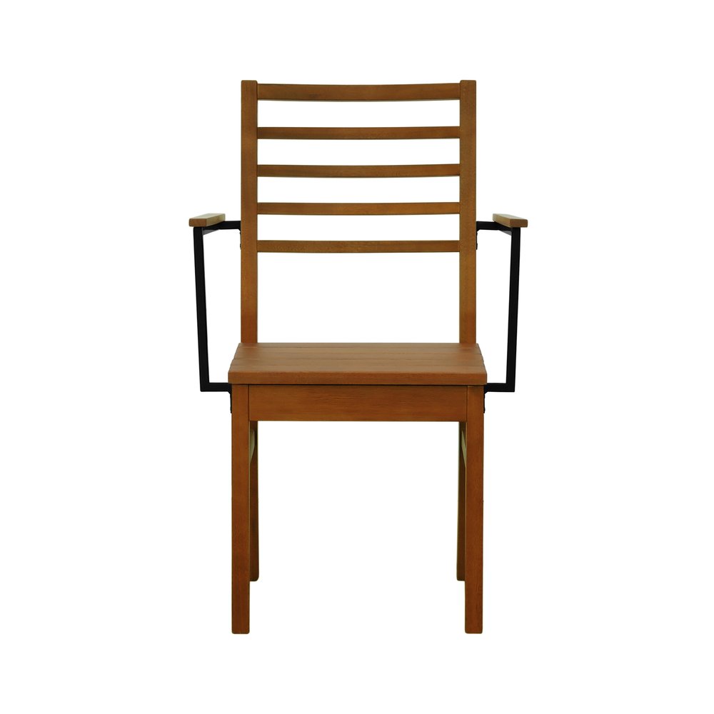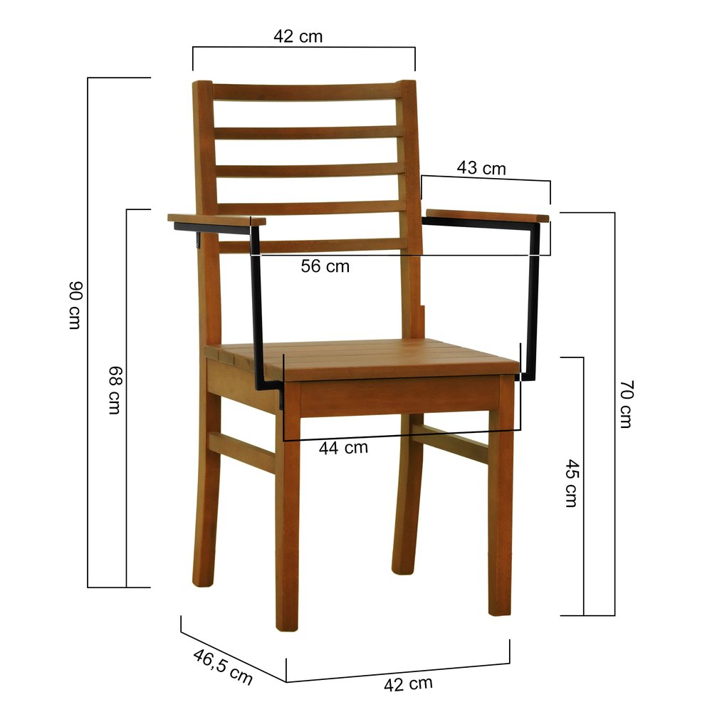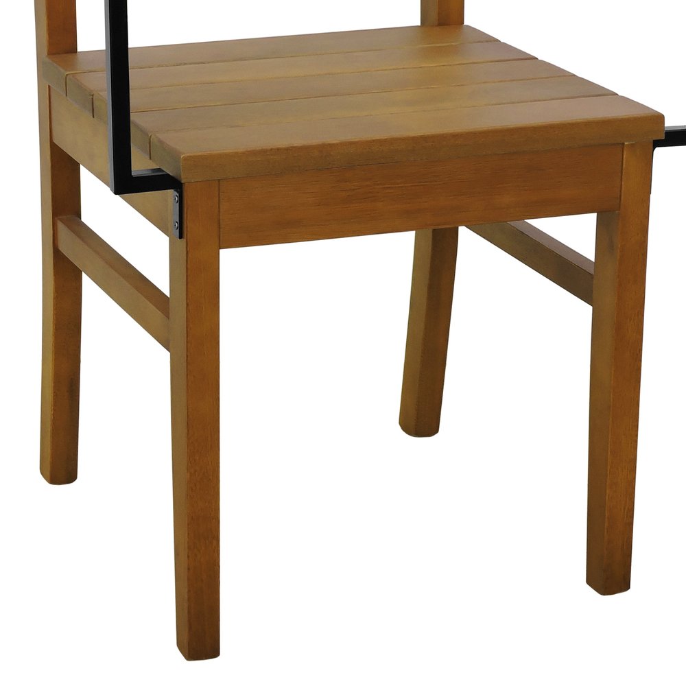 Kit 2 Cadeiras Tiê Madeira Maciça Encosto Ripado c/Braço Metal - Amêndoa Assento Ripado Amêndoa