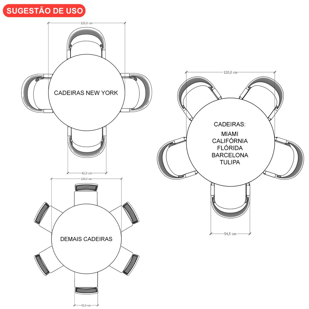 Mesa de Jantar Apollo Tampo Redondo Ø120