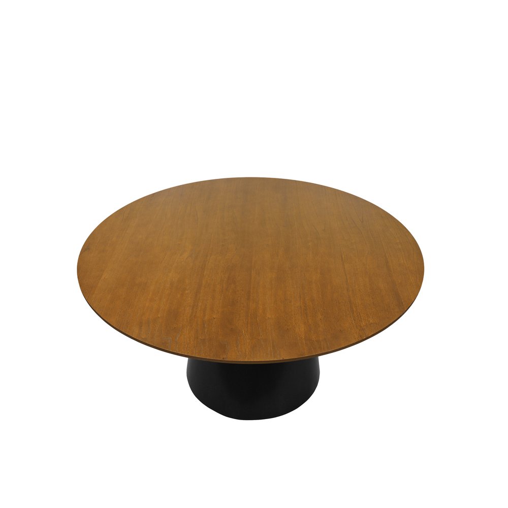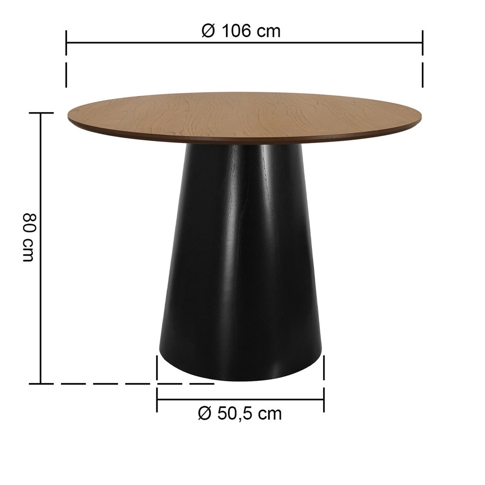 Mesa de Jantar Cone Base Laqueada na Cor Preta - Tampo Redondo Ø106cm Laminado Amêndoa