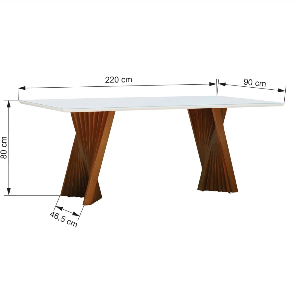Mesa de Jantar Gus 220x90cm Tampo MDF Laqueado com Vidro