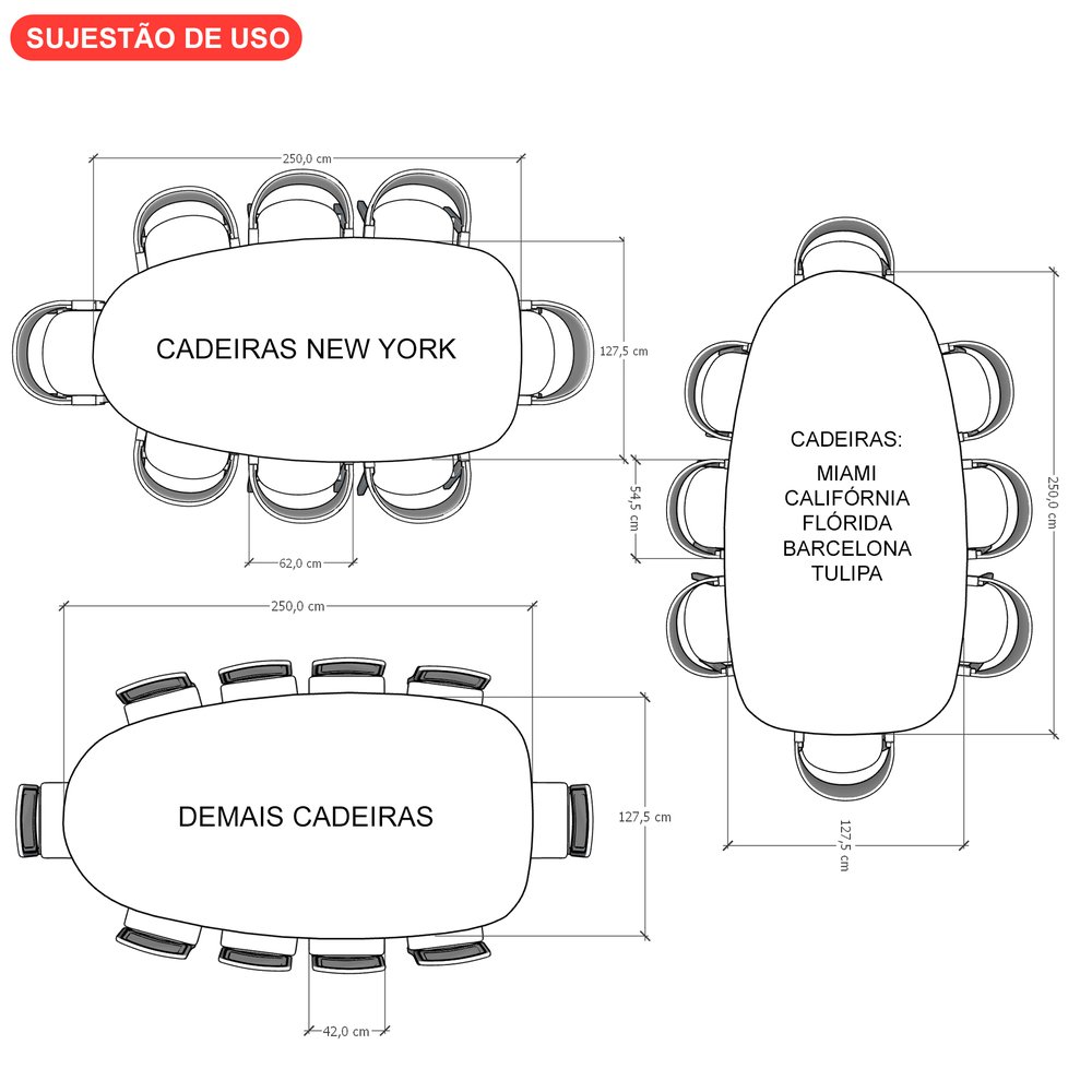 Mesa de Jantar Organik Tampo Laminado Cinamomo 250x127,5cm – Amêndoa