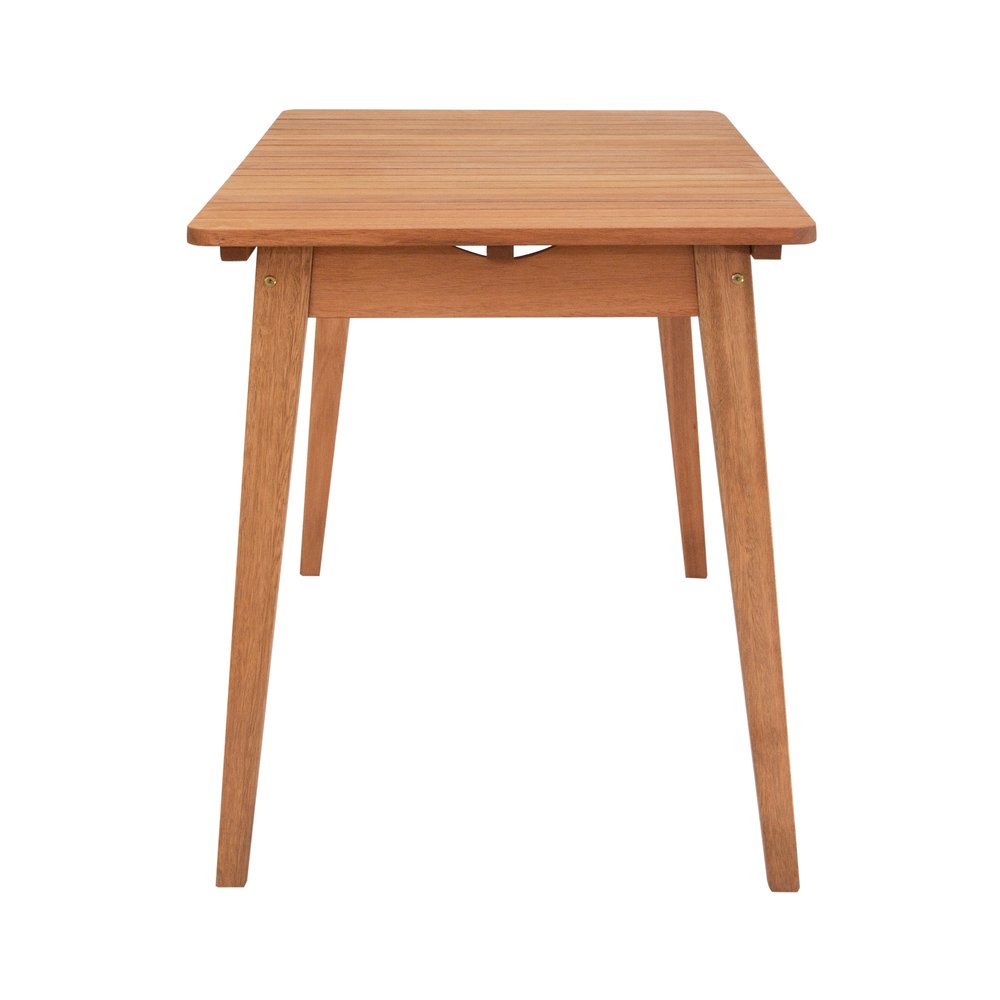 Produzida em madeira de eucalipto, a Mesa Garden Retangular destaca-se pela robustez e durabilidade. A base composta por quatro pés torneados proporciona estabilidade e suporte adequado, suportando até 30 kg de peso distribuído uniformemente.