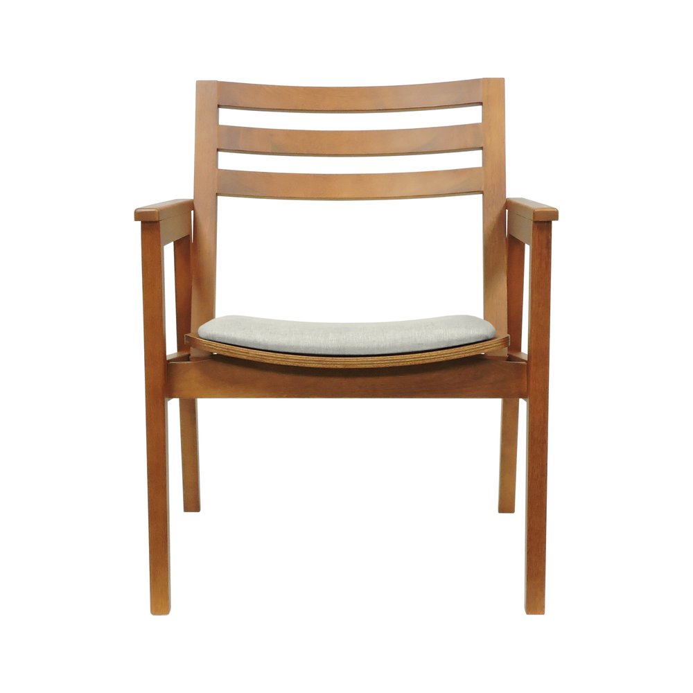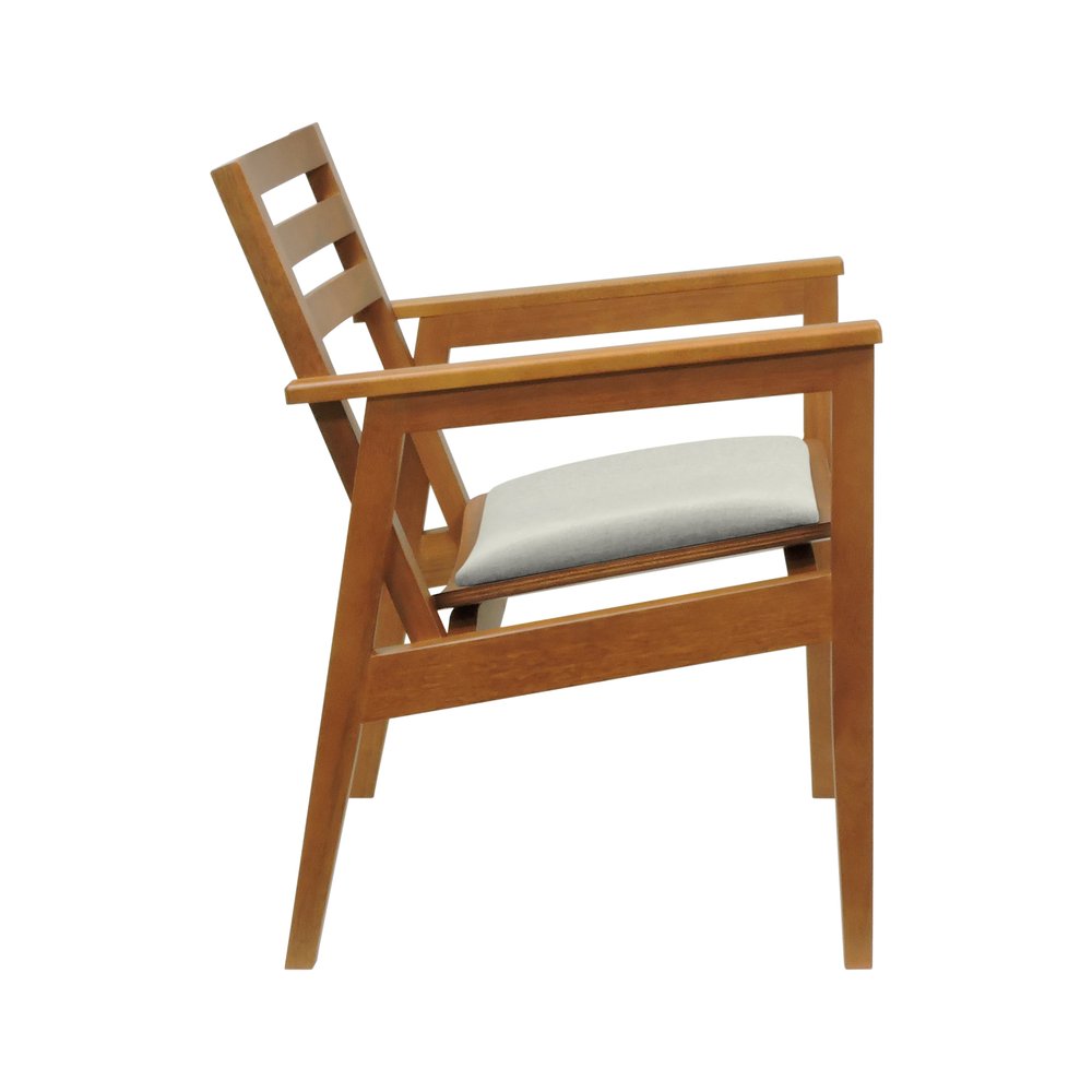 Poltrona Cairo Madeira Maciça Encosto Ripado Assento Anatômico - Amêndoa Estofado Linho Bege Mescla Impermeável