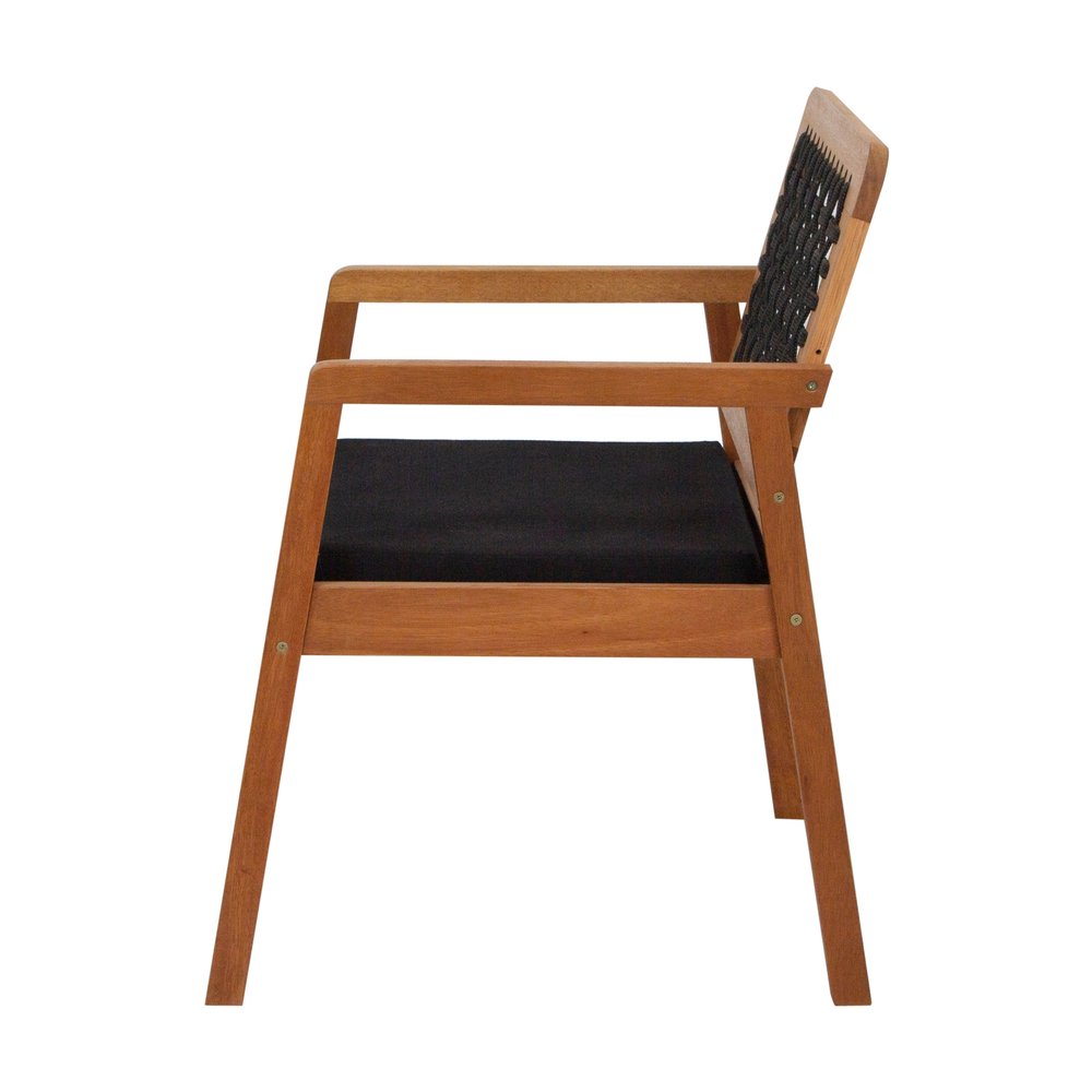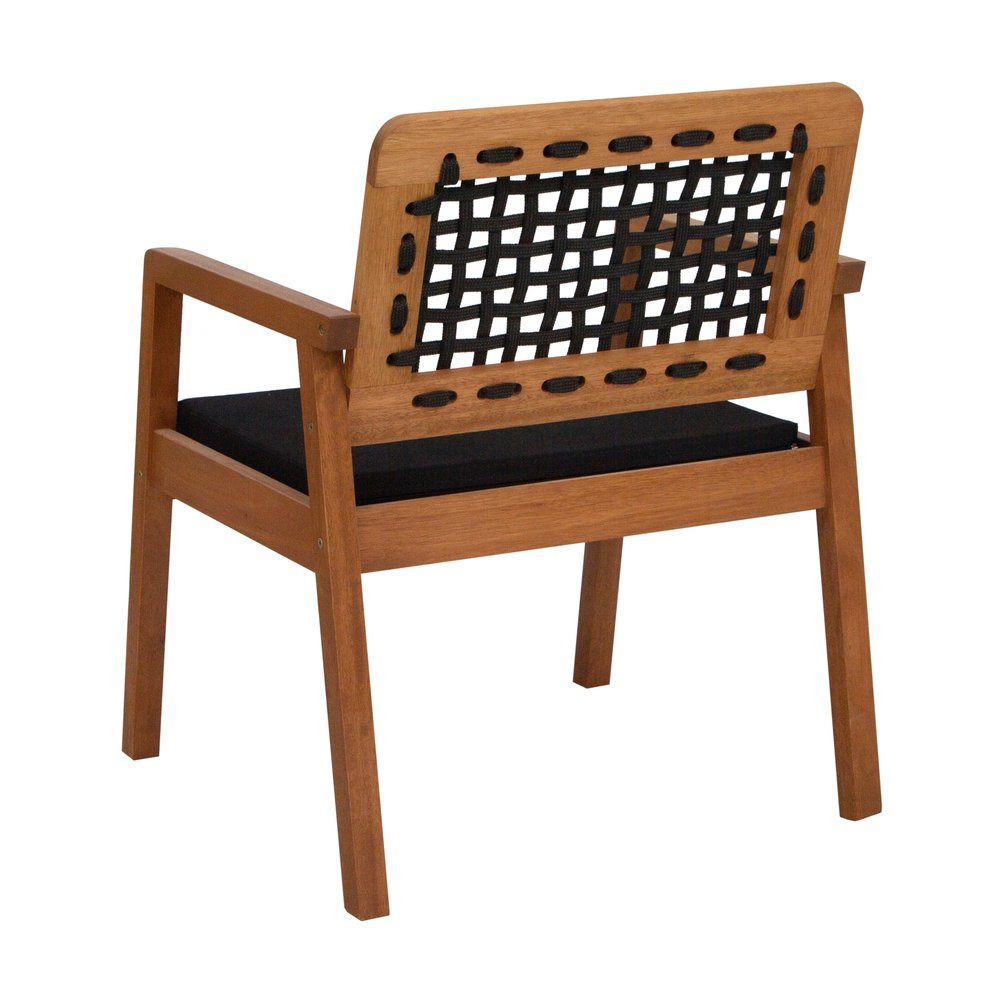 Poltrona Garden Madeira Maciça Assento Estofado Encosto Trançado Corda