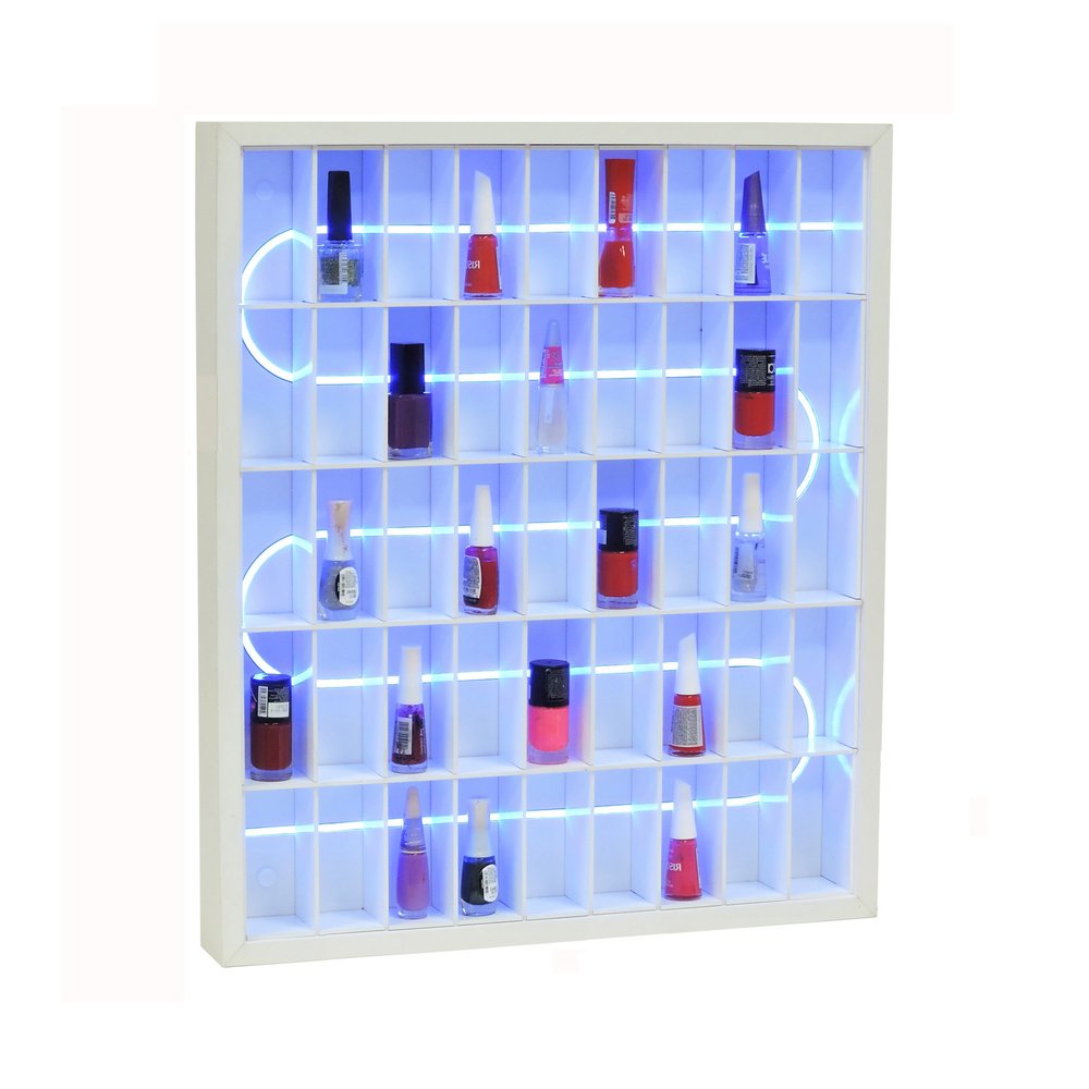 Produzido todo em MDF com pintura laqueada a Prateleira para Esmaltes Roma com LED oferece ao seu ambiente ar de organização. Com design inovador e detalhes diferenciados é ideal para dar um toque especial. Possui aplicação de LED para destacar ainda mais suas coleções ou produtos favoritos. Também pode-se ser utilizado como estante decorativa para aquele espaço que você quer destacar no seu ambiente. Aproveite para renovar com bom gosto e qualidade. Produto de altíssima qualidade, deixe o seu cantinho favorito ainda mais bonito com a Prateleira para Esmaltes Roma com LED.