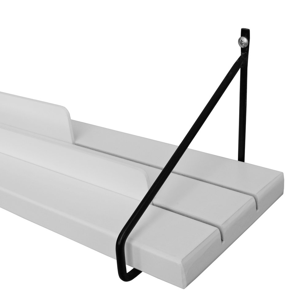 Produzida em madeira maciça, MDF laqueado e aço de carbono tingido com pintura epóxy, a prateleira alia resistência estrutural e acabamento de alta qualidade. A madeira ou MDF oferece o charme e o calor das texturas naturais, enquanto o aço epóxi garante robustez, suportando com folga o peso de livros, quadros e objetos decorativos.