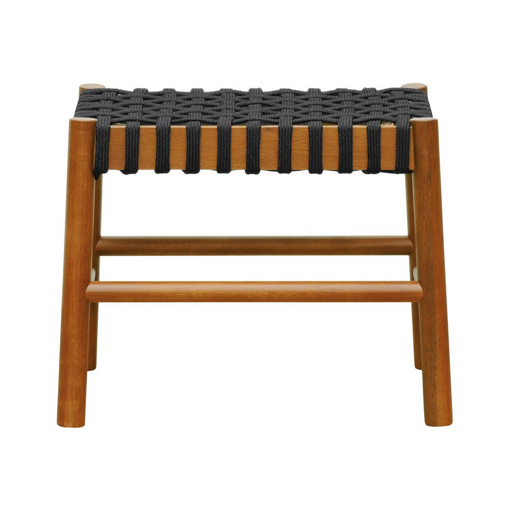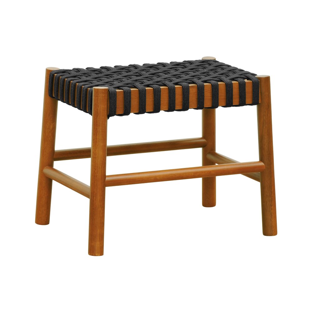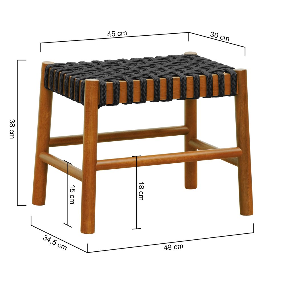 O Puff Baixo Amber em madeira maciça na cor amêndoa com assento em corda trançada preta (SKU RNV9348ATCP) combina funcionalidade e beleza num único móvel, perfeito como apoio para os pés, assento extra ou suporte de objetos decorativos em diversos ambientes da casa. Seu design versátil permite usá-lo em salas de estar, varandas, áreas de festas e churrasqueiras, adaptando-se tanto a decorações rústicas quanto modernas.