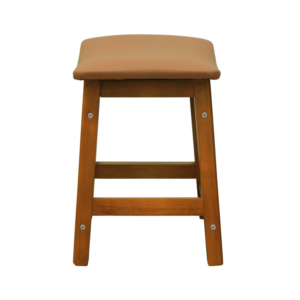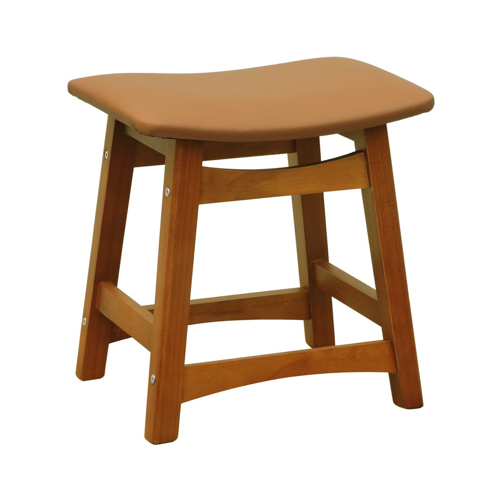 Puff Confort Madeira Maciça Assento Anatômico - Amêndoa Estofado Corano Caramelo