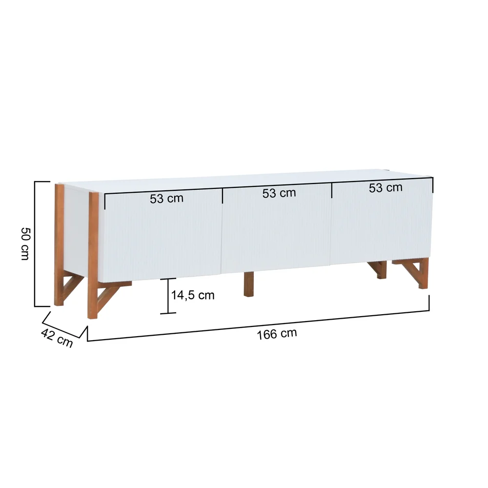 Com 166 cm de largura, 42 cm de profundidade e 50 cm de altura, o Rack 3 Portas Decor adapta-se facilmente a diferentes layouts, sem comprometer a circulação no ambiente. Seu perfil alongado oferece amplo espaço para aparelhos de TV, home theater e itens de decoração, enquanto o design compacto permite encaixe em salas pequenas ou corredores largos.