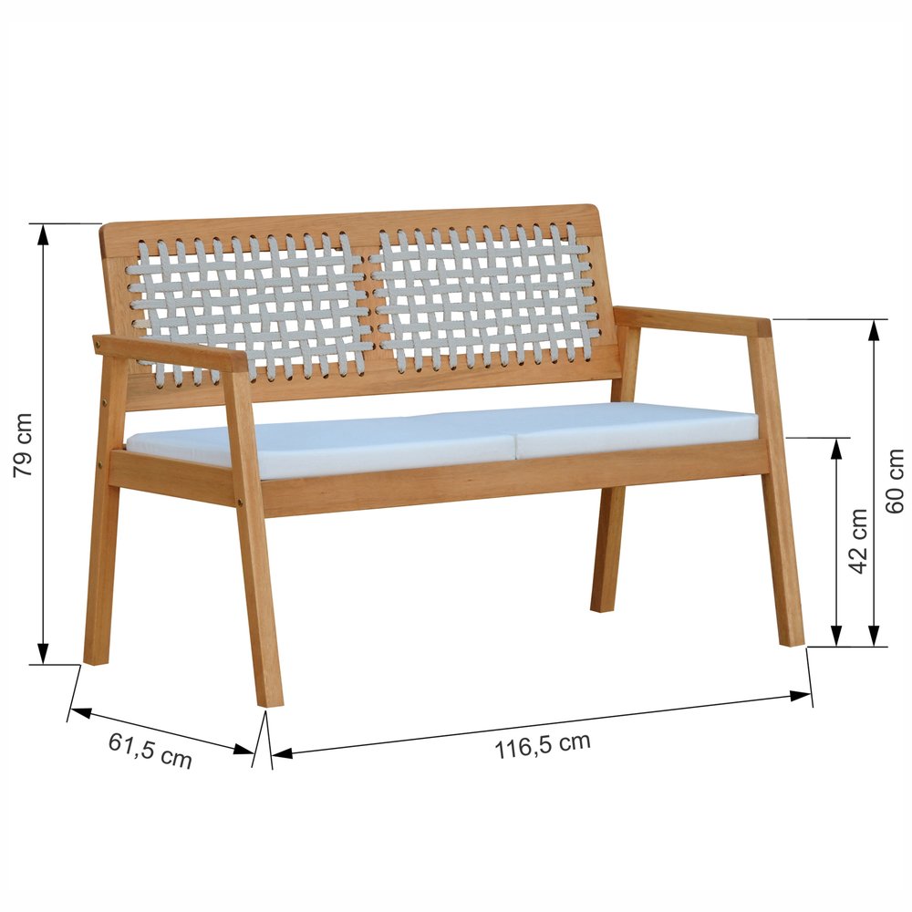 Sofá 2 Lugares/Namoradeira Garden Madeira Maciça Assento Estofado Encosto Trançado Corda