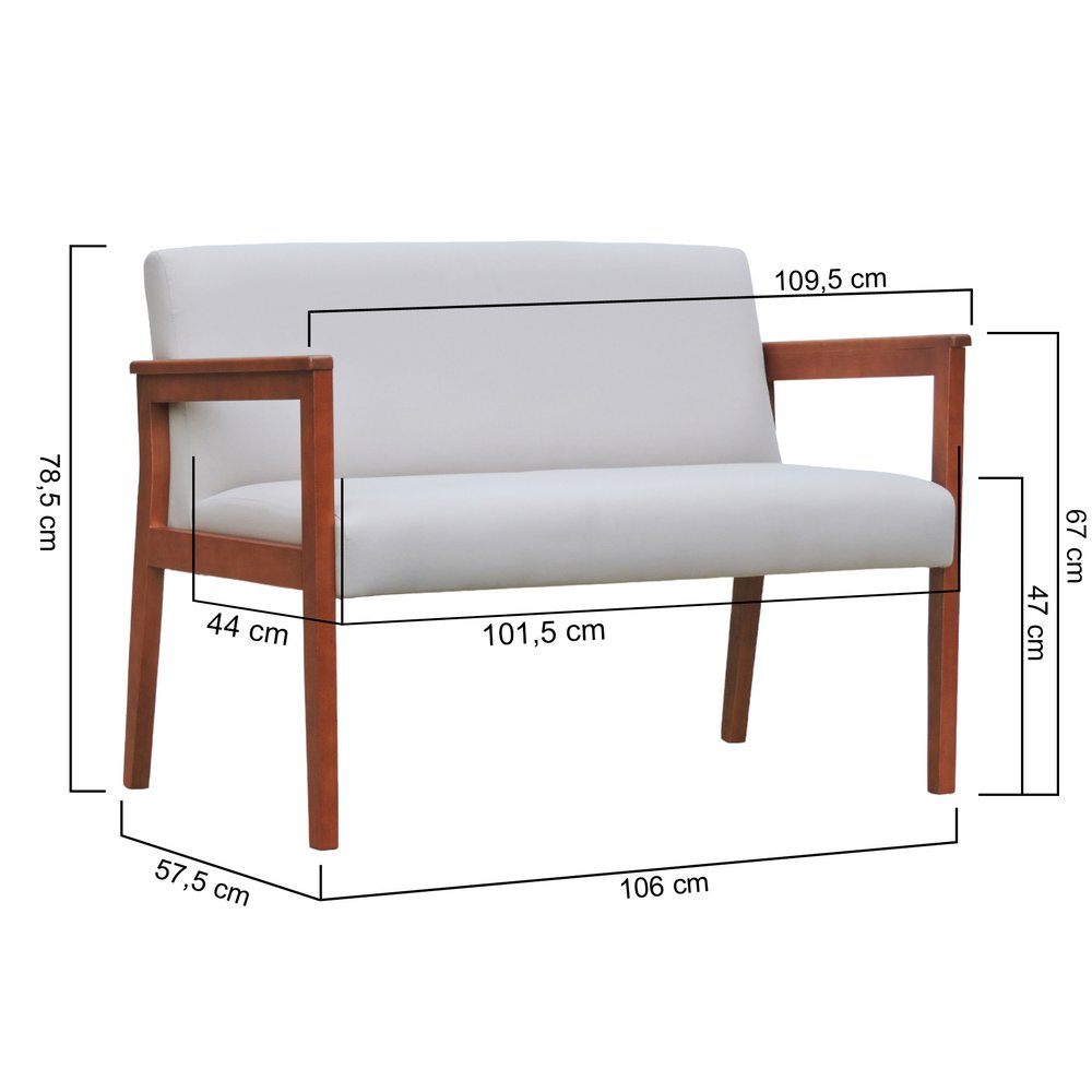 O assento e encosto são cuidadosamente estofados para oferecer suporte ideal ao corpo, promovendo conforto em momentos prolongados sentados. Sua capacidade de 2 lugares, aliada a dimensões compactas de 109,5 × 57,5 × 78,5 cm (L×P×A), torna-o perfeito para salas de estar, varandas cobertas ou quartos.