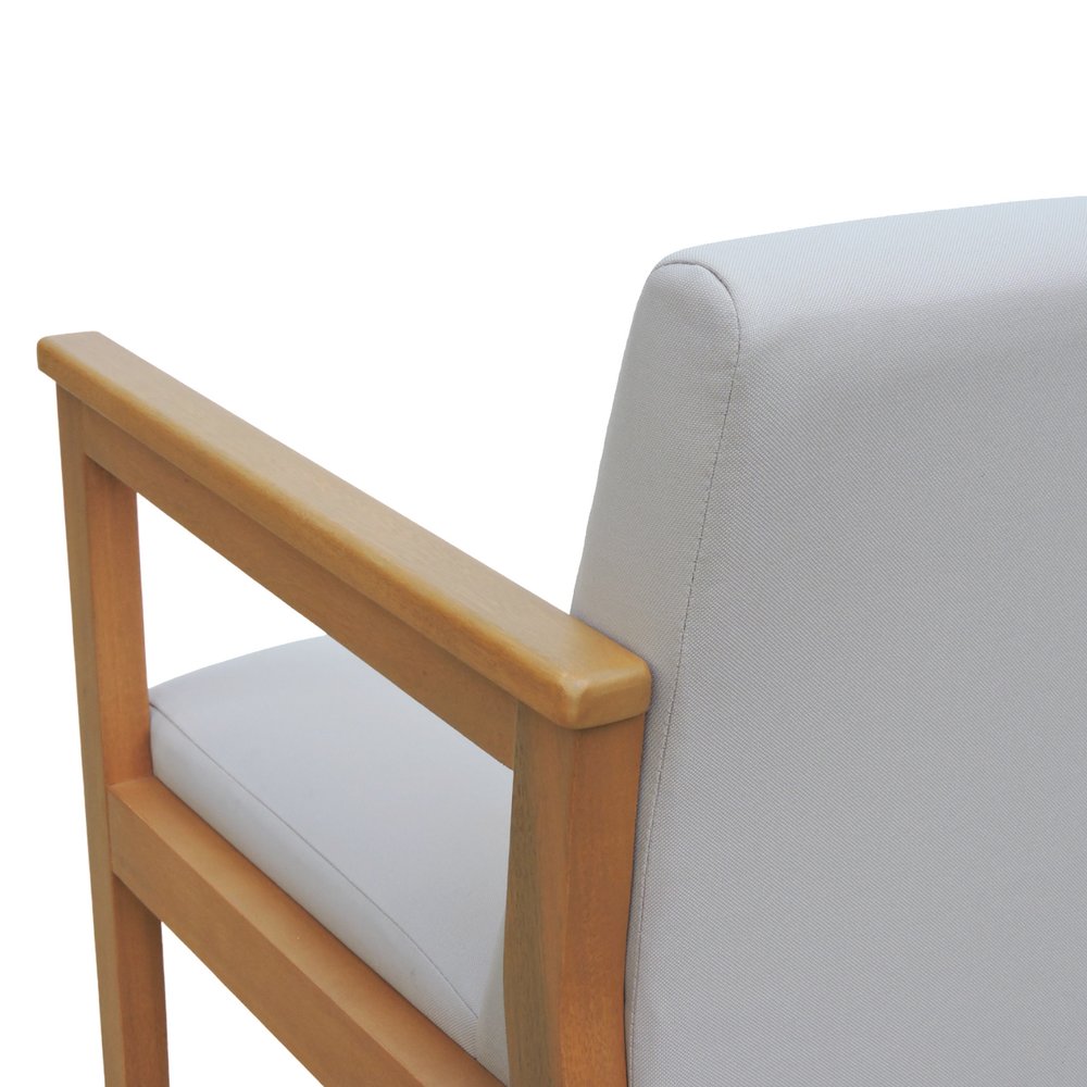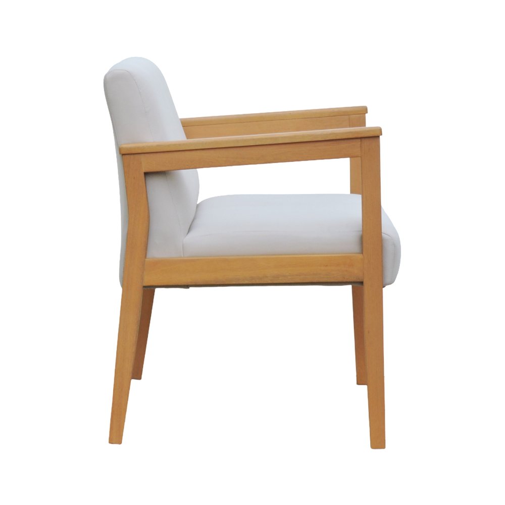 O destaque do modelo está no equilíbrio entre os materiais: a madeira maciça natural imprime robustez e durabilidade, enquanto o linho bege oferece suavidade, conforto ao toque e um apelo visual leve. O encosto e o assento são cuidadosamente estofados para garantir ergonomia, proporcionando uma experiência confortável tanto para relaxar quanto para conversar ou ler.